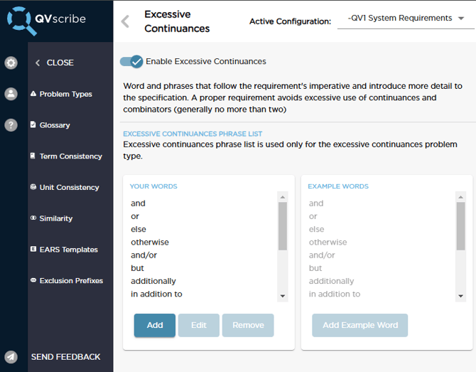 QVscribe provides assistance for authors using the Easy Approach to Requirements Syntax (EARS).