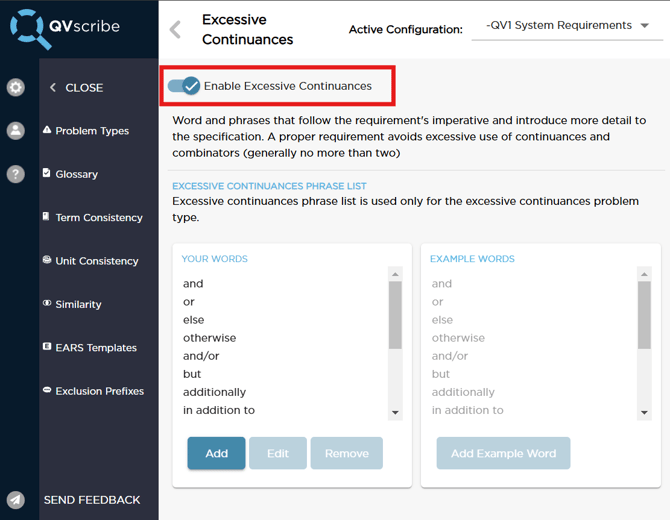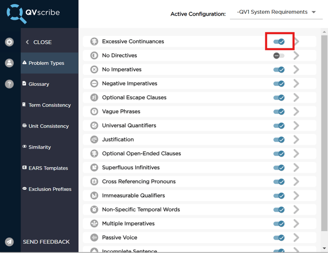 Within the Configurations section, configuration authors can enable or disable the EARS conformance check.