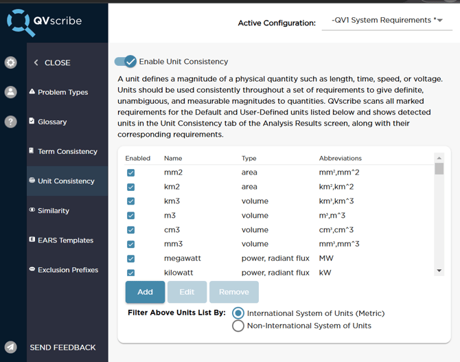 QVscribe detects measurement units within requirements and ensures they are used consistently.