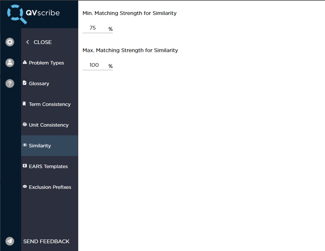 The Matching Strength setting determines how closely two requirements must match before QVscribe flags them as similar.