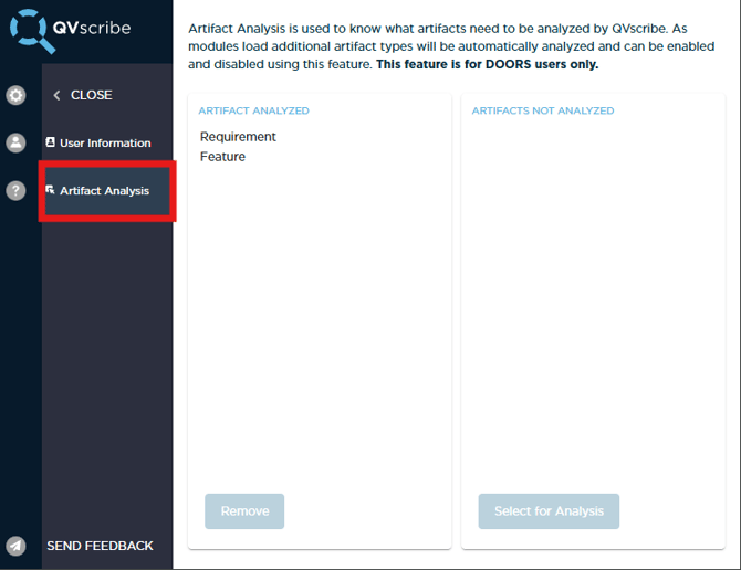 🦖Coach QRex: At least one artifact type must be enabled within the “Artifact Analyzed” set for QVscribe.