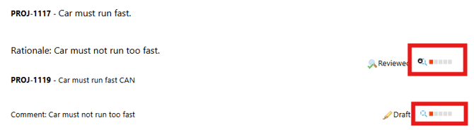 QVscribe also provides the ability to open the authoring view in the document viewer. Editable work Items will see the QVscribe icon next to the status of the work item.