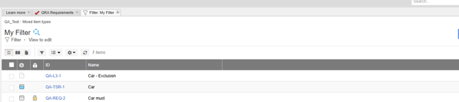 From the Jama Projects panel, click the Filters tab (second tab on the left).