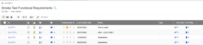 Once selected, the page refreshes in your browser and the QVscribe icon is displayed in the module or collection view. The summary view will include the analysis for the newly added artifact type.