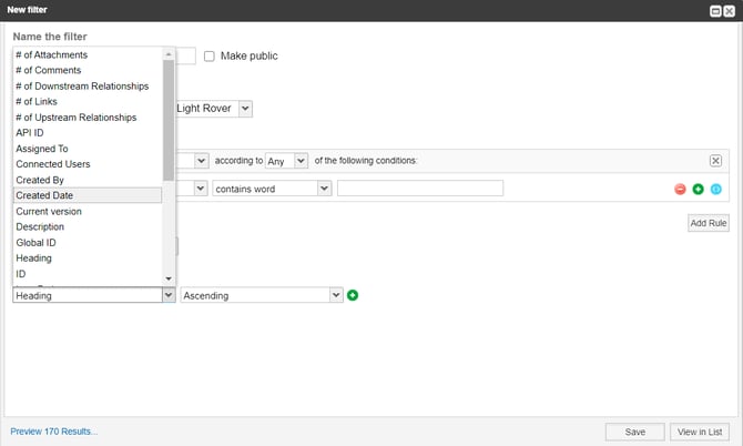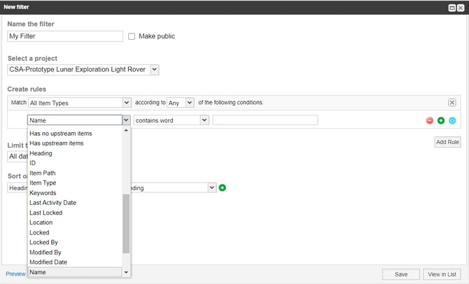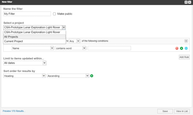 Choose to save and name your filter, or simply view it right away by selecting View in list.